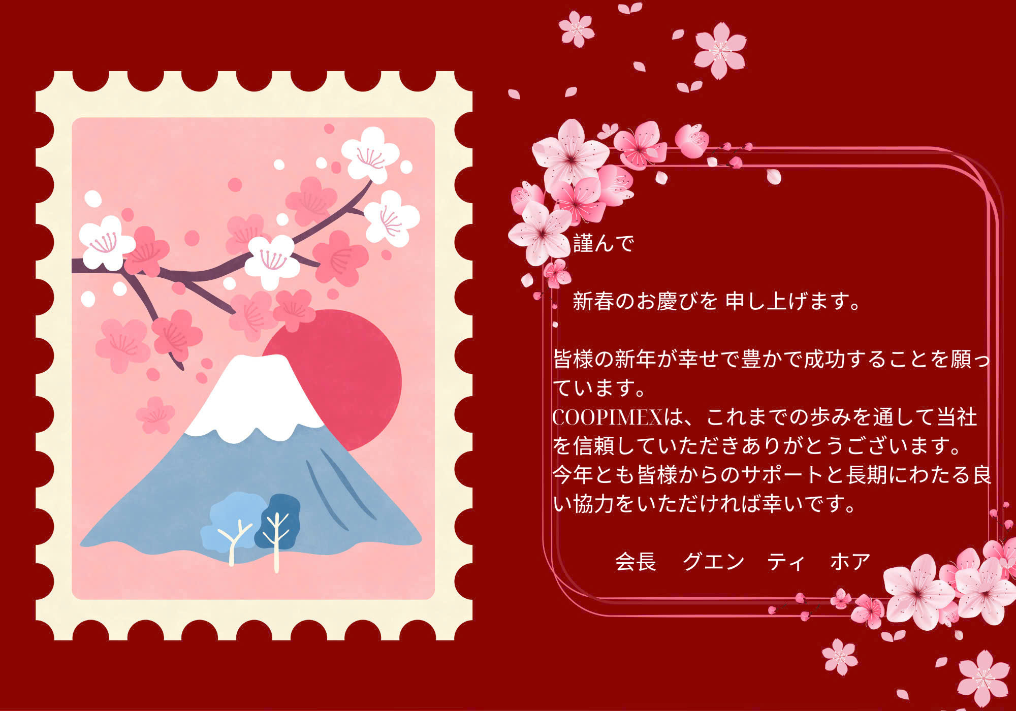 Bước sang năm mới 2025, sẽ là một năm đầy triển vọng, tương lai tốt đẹp đang hứa hẹn chúng ta. COOPIMEX xin gửi lời chúc sức khỏe và lời chào trân trọng đến Ban lãnh đạo các cấp của Việt Nam và Nhật Bản cùng Quý đối tác khách hàng, Quý phụ huynh, các bạn Học viên!
